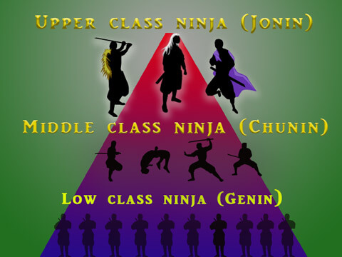伊賀の忍者制度は、上忍・中忍・下忍との階級に分かれており、上忍は百地・藤林・服部の伊賀の土豪三家でその下に中忍と下忍が組み込まれていました。