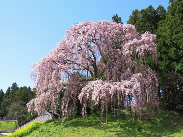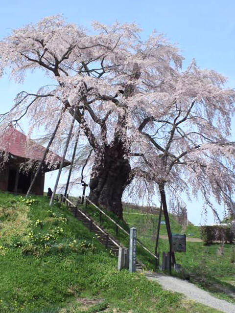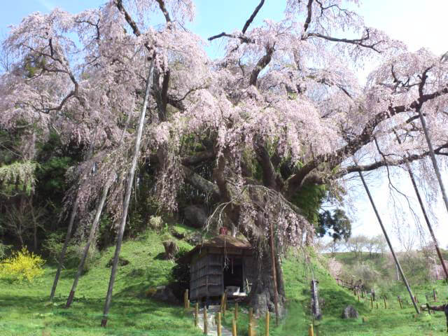 滝桜は、奈良時代に「蝦夷征伐の将軍」として知られる坂上田村麻呂によって、今から1,000年以上前に植えられたと伝えられています。彼は、京都御所から紅しだれ桜(ベニシダレ)の種を持ち込んだのです。